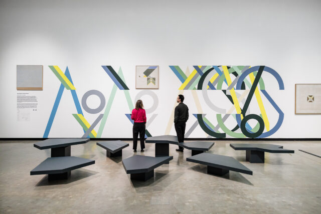Die Sammlung des MoCA Skopje ist eine Zeitkapsel internationaler Kunst aus der Hochphase des Modernismus und zugleich eine seltene künstlerische Begegnung, die während des Kalten Krieges den Graben zwischen Ost und West überwand. Sie versammelt viele Werke von weißen, zumeist männlichen Künstler*innen, die ein kunstinteressiertes Publikum wiedererkennen wird, dazu weniger bekannte, aber oft faszinierende Werke von Künstler*innen aus dem früheren Osten und dem globalen Süden.